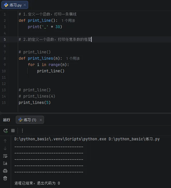 1)写一个函数,打印一条横线;打印自定义行数的横线。