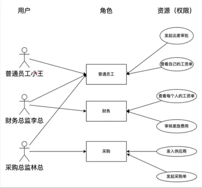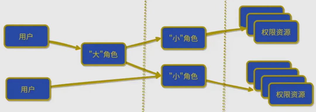 也就是说,角色实际上是人与资源之间的中间桥梁,人可以通过拥有某个角色来获得该角色下的所有权限。 如下图,如果按传统权限模型,给每一个用户赋予权限则会非常麻烦,并且做不到批量修改用户权限。这时候,可以抽象出几个角色,譬如普通员工、财务、采购等,然后把权限分配给这些角色,再把角色赋予用户。这样无论是分配权限还是以后的修改权限,只需要修改用户和角色的关系,或角色和权限的关系即可,更加灵活方便。此外,如果一个用户有多个角色,譬如王先生既负责财务和采购,那么可以给王先生赋予两个角色,即财务角色+采购角色,这样他就拥有这两个角色的所有权限。 当用户的工作内容发生变化时,如上图林总职务变更(从采购总监变更为财务总监),只需要重新绑定用户关联的角色,而不用一一删除该用户的权限再添加权限。