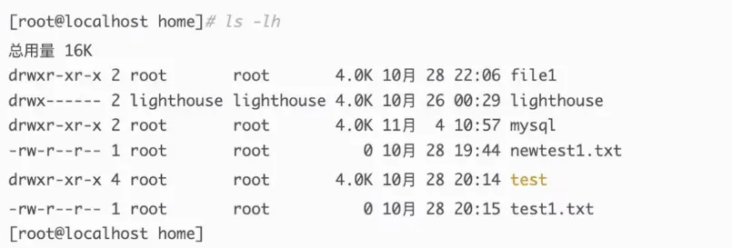 显示详细信息:权限、大小(自动转KB/MB/G,这就是h,human-readable人性化,方便看懂)、时间、所有者