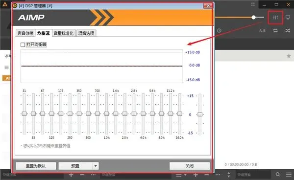 打开 AIMP 均衡器,点界面右上角的均衡器按钮,就会弹出设置对话框。