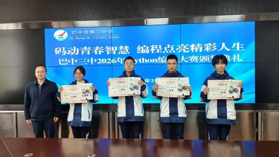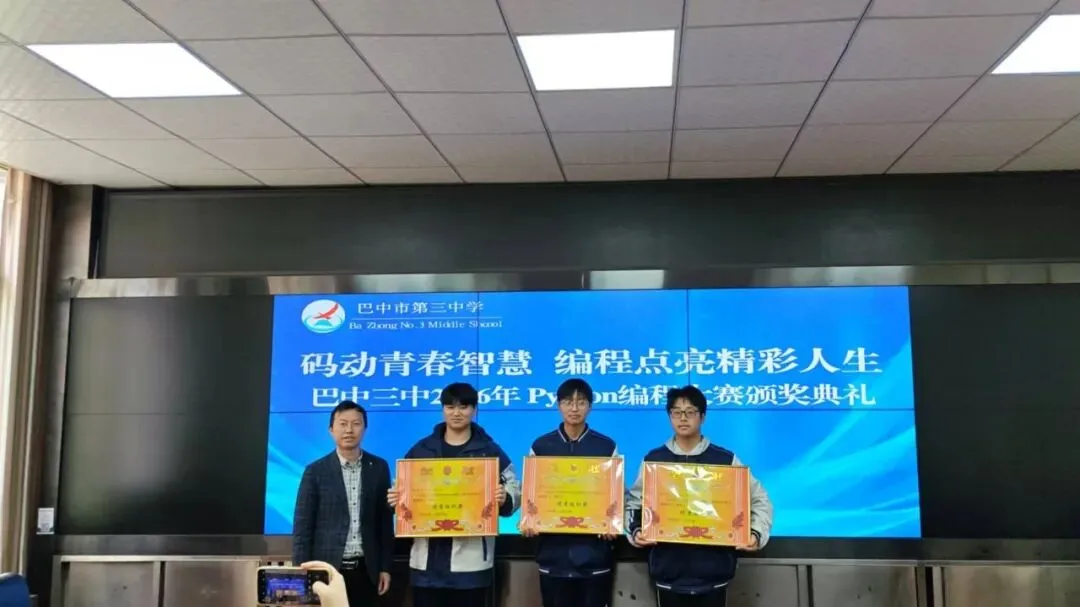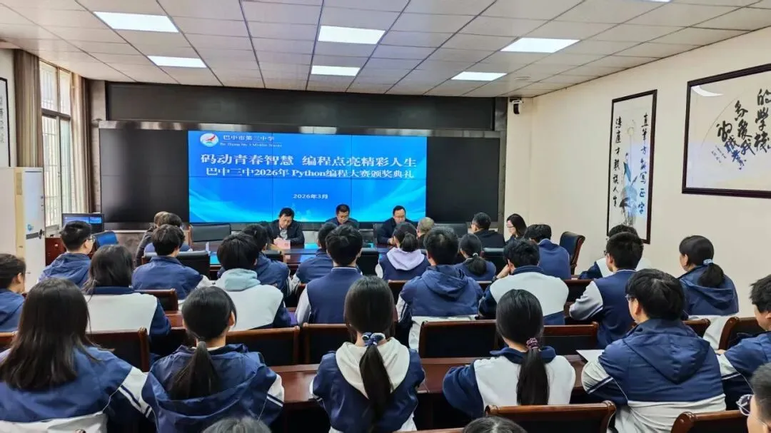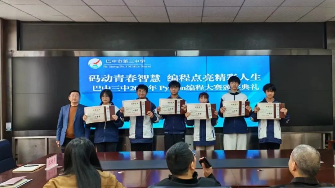 随后,颁奖典礼于11:10在希望楼小会议室隆重举行。典礼由谭丽蓉老师主持。首先,何博副校长为大赛致辞,对参赛选手的表现给予高度肯定,并寄语同学们在编程道路上不断前行。接着,学校党委副书记谢金洪同志宣布获奖名单。