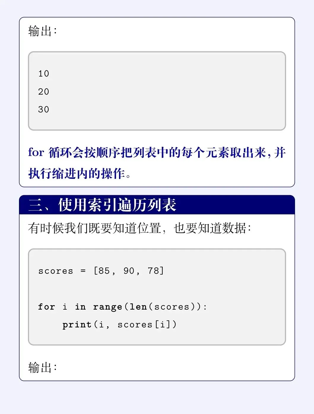 👉 for 会按顺序把列表里的元素一个个拿出来。