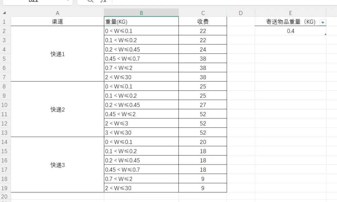 人工做这件事,需要逐个判断重量落在哪个区间,再比较价格。如果报价规则复杂(比如区间重叠、表达式多种多样),手动处理简直是灾难。