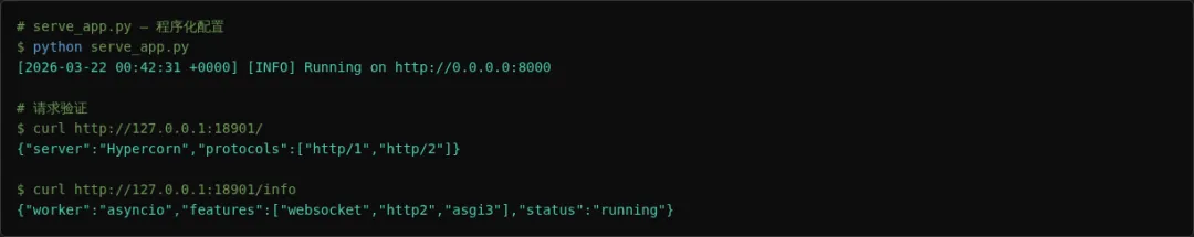 hypercorn 支持通过 Python 代码精细控制配置,适合嵌入到更大的系统中: