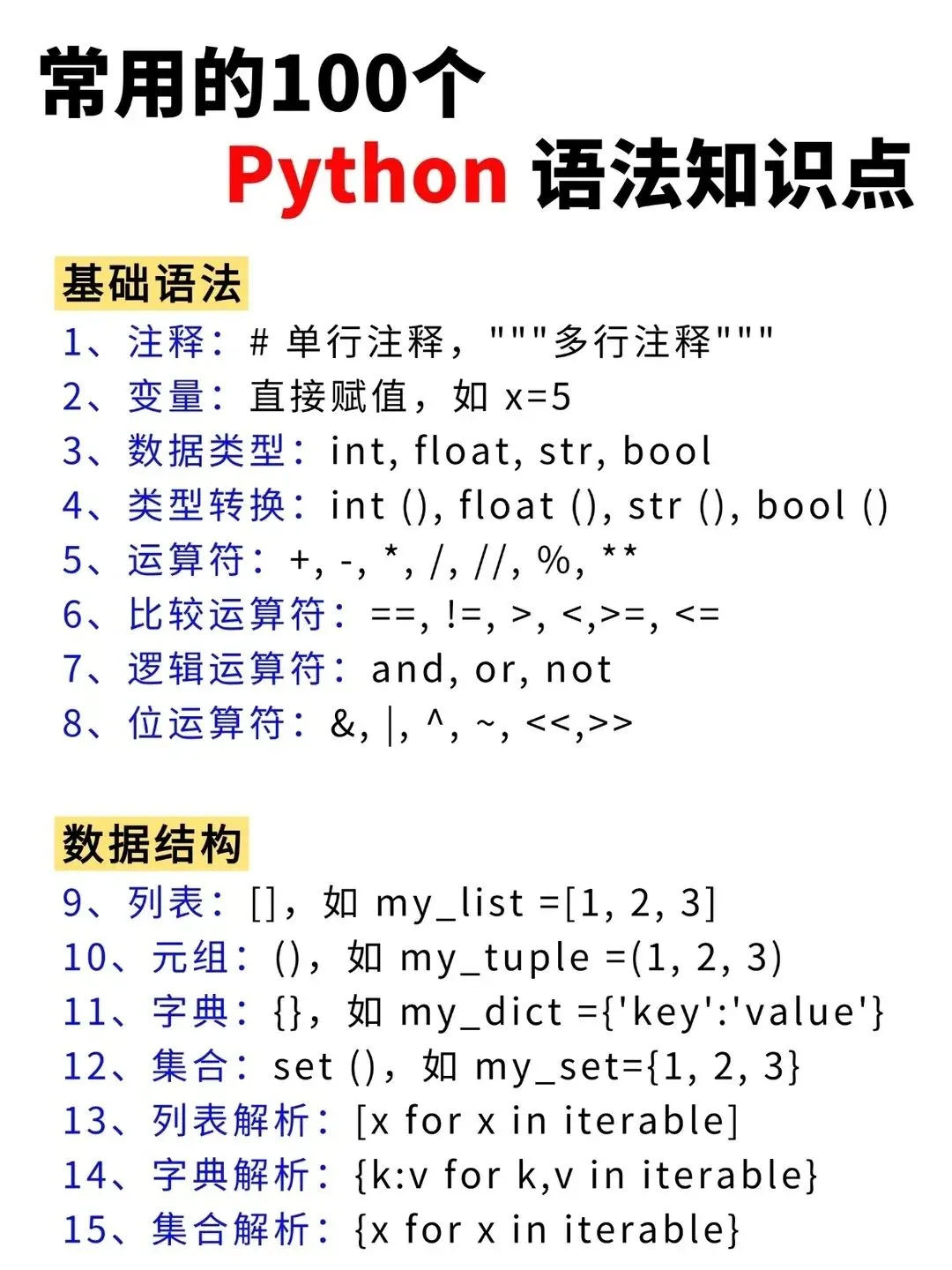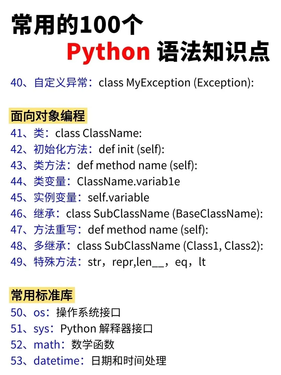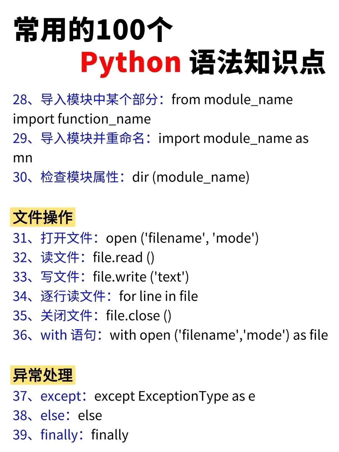 >Python常用的100个基础语法知识点!