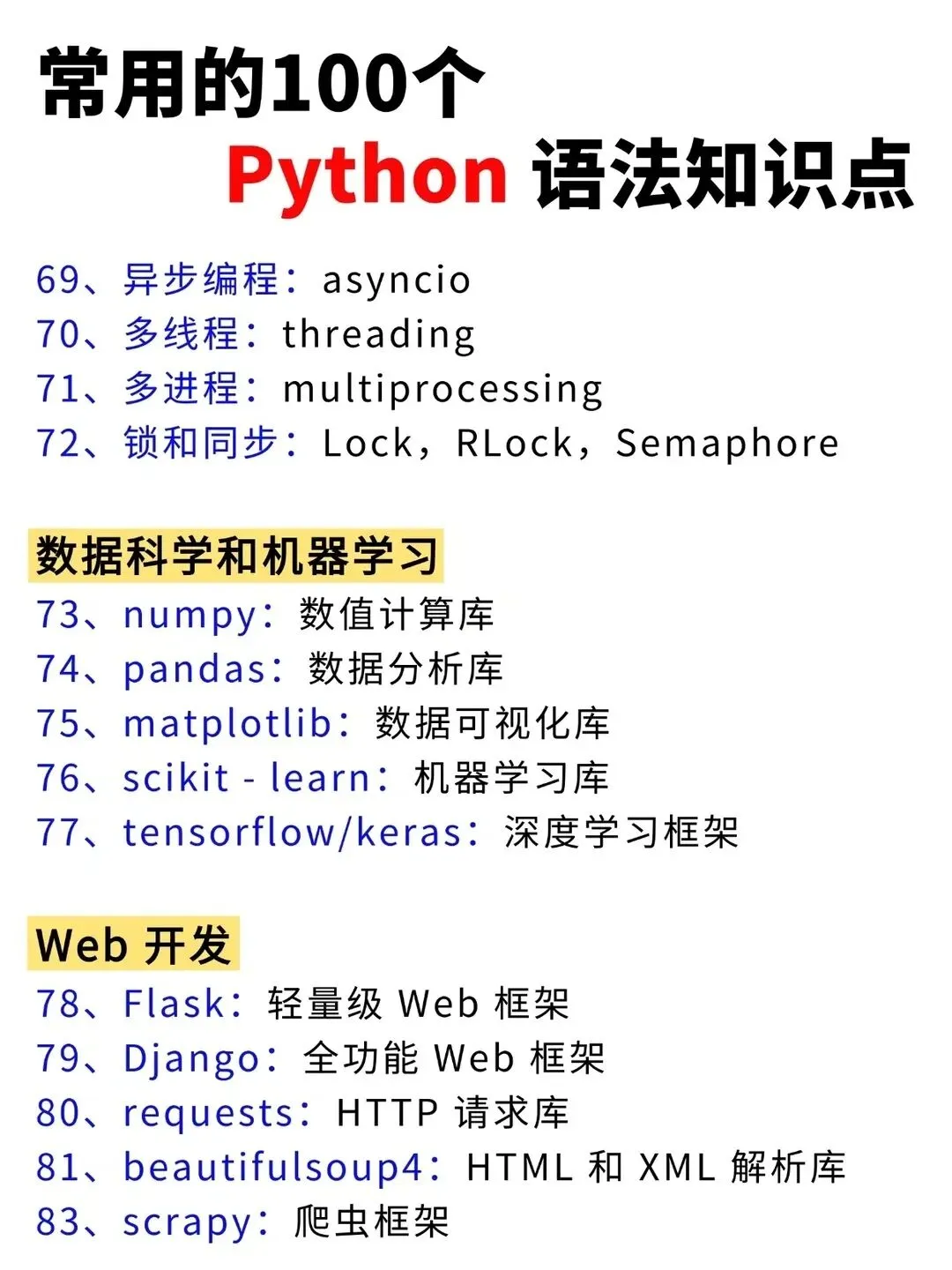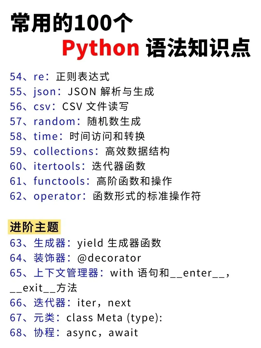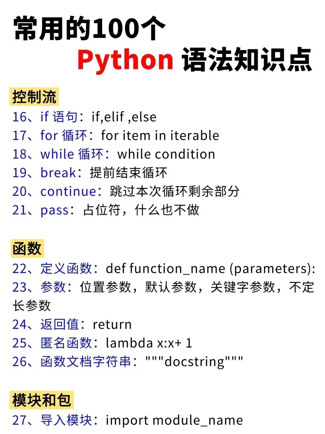 >Python常用的100个基础语法知识点!