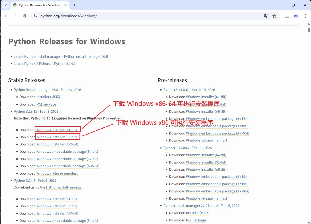 步骤 1:访问Python Windows 版本官方网站。