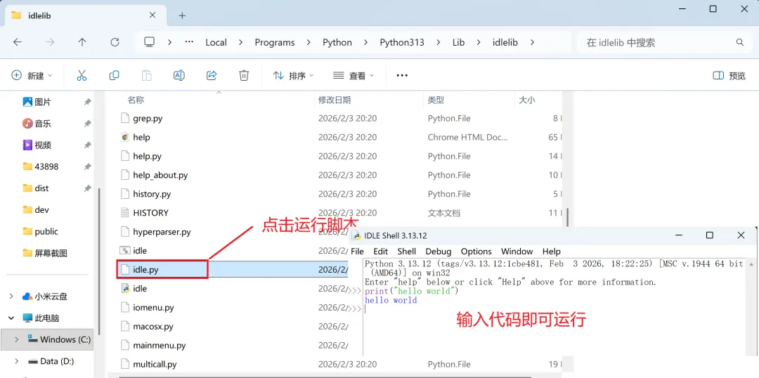 步骤 8:Python 提供了一个名为 IDLE 的集成开发和学习环境工具。您可以运行“ C:\Users{USER_HOME}\AppData\Local\Programs\Python\Python37\Lib\idlelib\idle.pyw ”来启动它并执行 Python 代码片段。