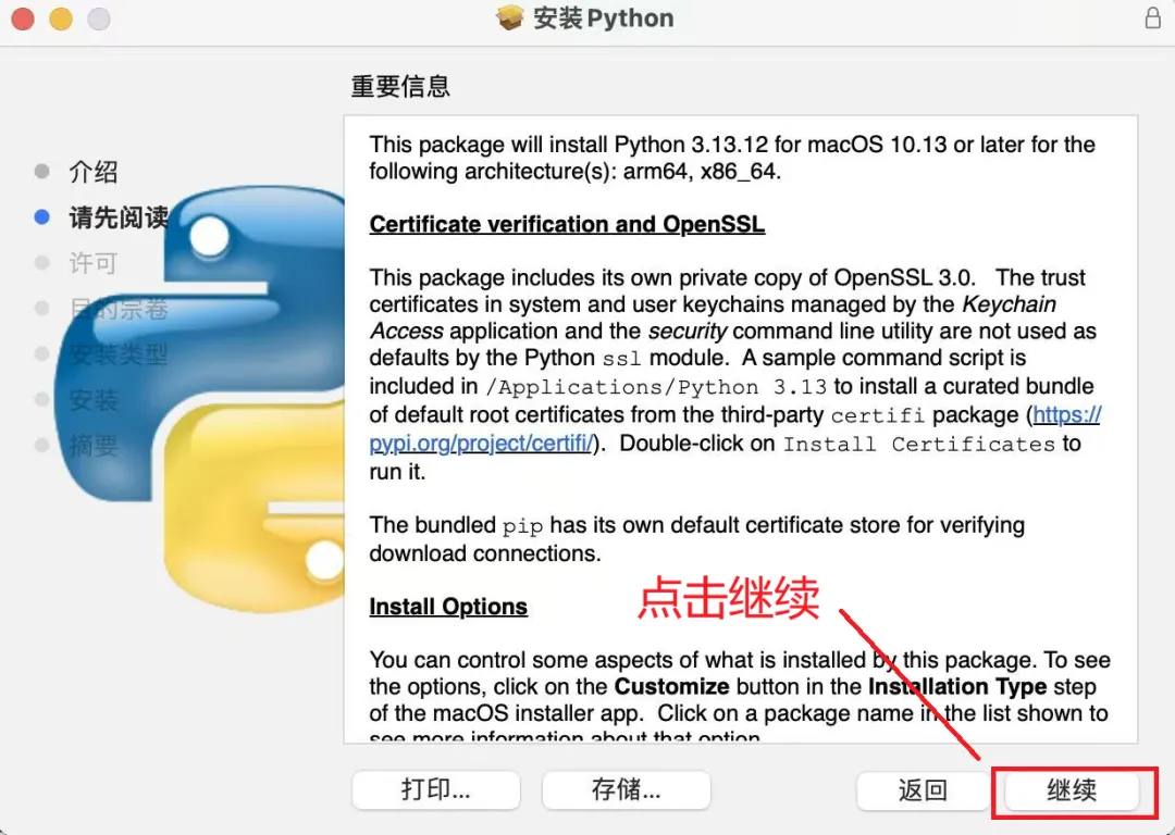 步骤 3:运行 Python 安装程序包。它将显示以下屏幕。单击“继续”按钮,然后按照安装说明进行操作。 作。