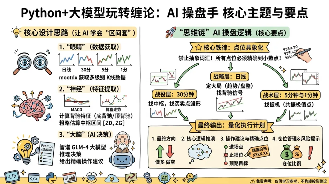 交易的本质是人性的博弈。我们借助 Python 不知疲倦的算力进行多级别数据监控,借助 AI大模型 强大的逻辑推理能力克服情绪恐惧与贪婪,这就是“硅基交易员”的雏形!