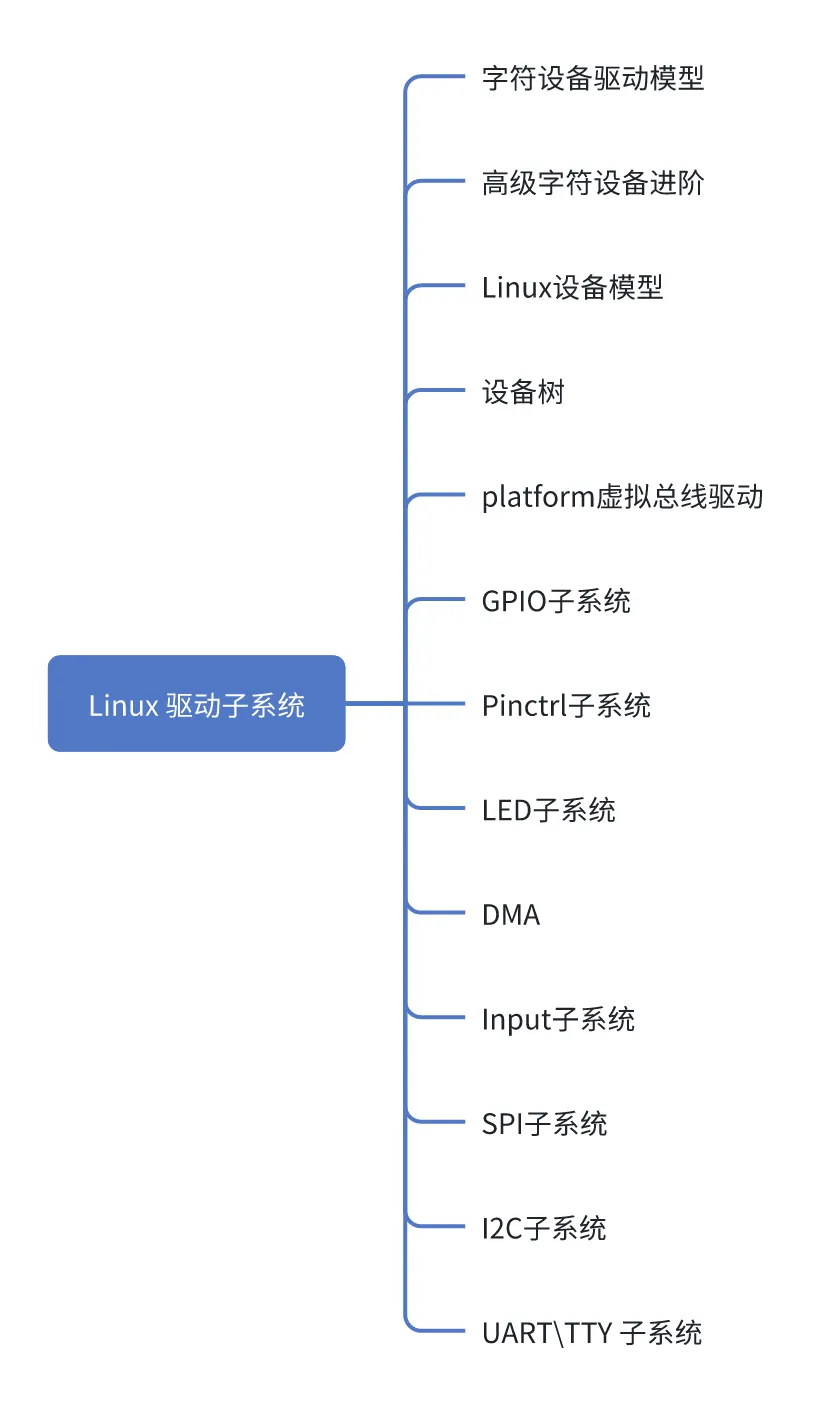 ② 我们的课程涉及的Linux驱动子系统有哪些: