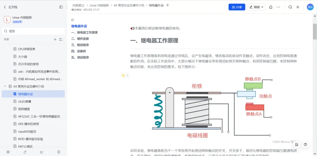 继电器电磁开关原理、GPIO 控制、设备树配置、驱动与应用层通断控制