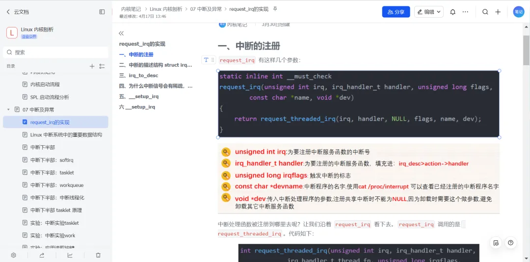 中断注册: