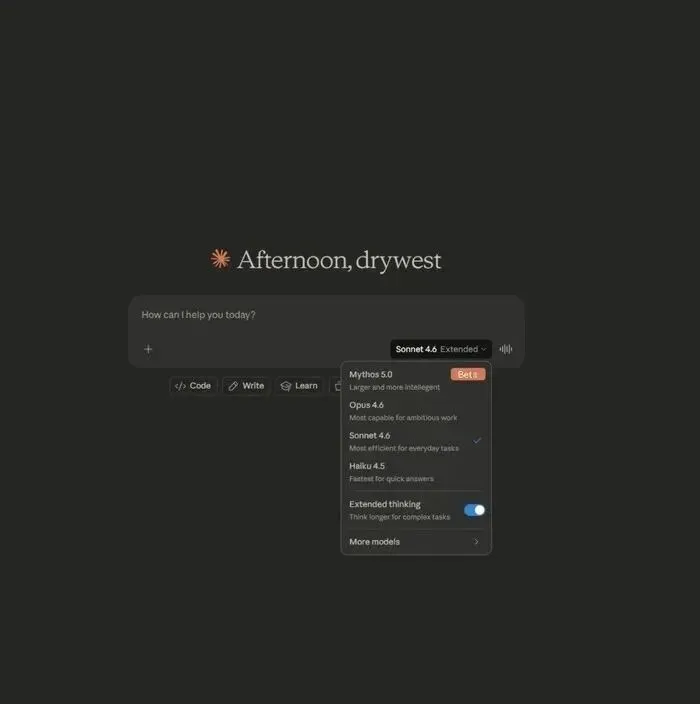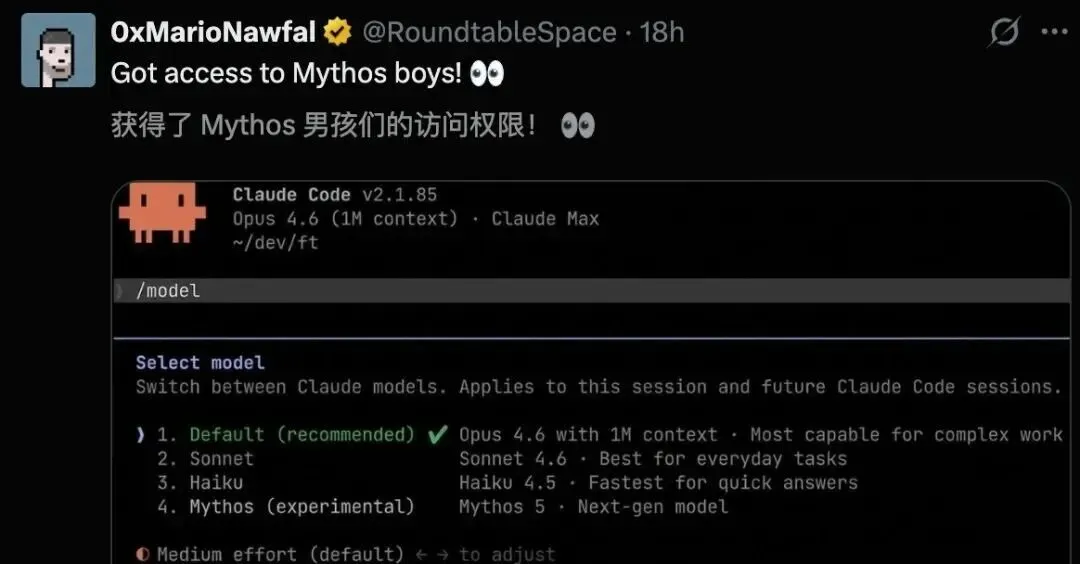 Anthropic去年同步观察到性能递进:Opus 4.6能在90分钟完成漏洞利用,Mythos 5.0则预期可进行系统级风险预测。官方口径保持克制,但界面变化说明内部测试正持续推进。