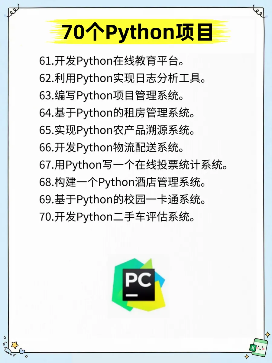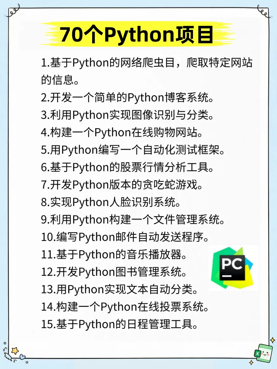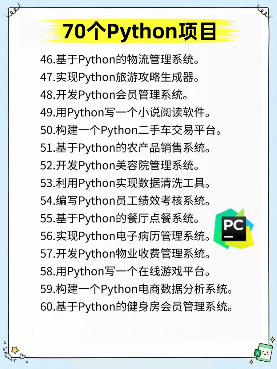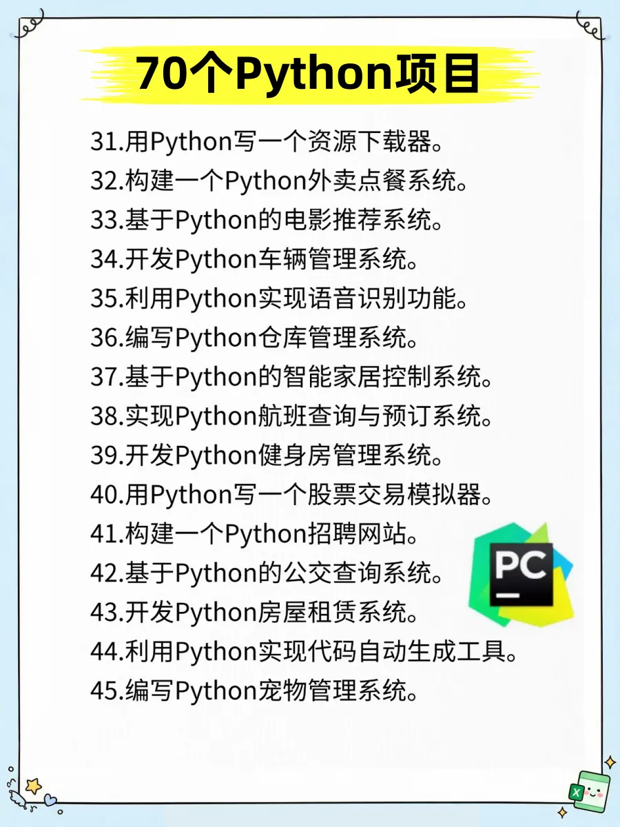 周末休息整理了70个Python项目。这些项目大部分都非常基础,小白练起来毫无压力!