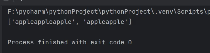 import res = "apple banana peach orange aaa appleappleapple appleapple"# ()分组ret = re.findall("(?:apple){2,3}", s)print(ret)