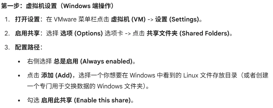 有时我们需要在虚拟机中验证一些简单的电路,而虚拟机需要访问 Windows 系统下的其他文件。通过配置共享文件夹,可以实现 Linux 与 Windows 之间的文件交互。具体操作步骤如下。