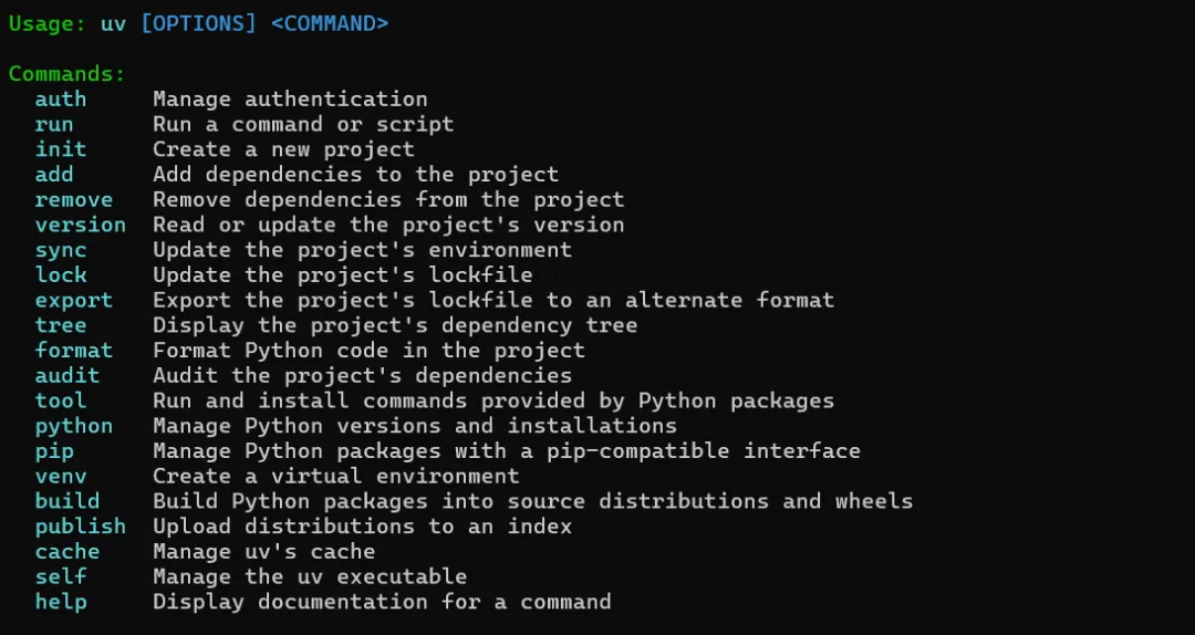 uv 是 Rust 编写的新一代极速 Python 环境/包管理工具,兼容 pip/venv 语法且速度提升 10-100 倍,以下是全场景命令汇总和避坑指南,覆盖环境创建、包管理、依赖锁定等核心场景,适配 Windows/macOS/Linux。另外,为了便于pip用户迁移,安装包时使用uv pip install,另外也推荐使用uv add 安装依赖,uv remove卸载依赖。