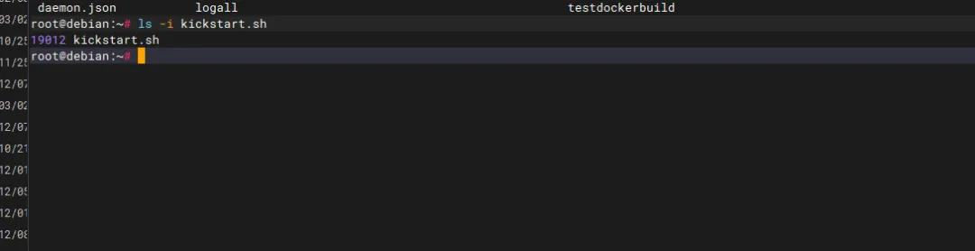 咱们随便找个文件看看,敲个 ls -i 命令: