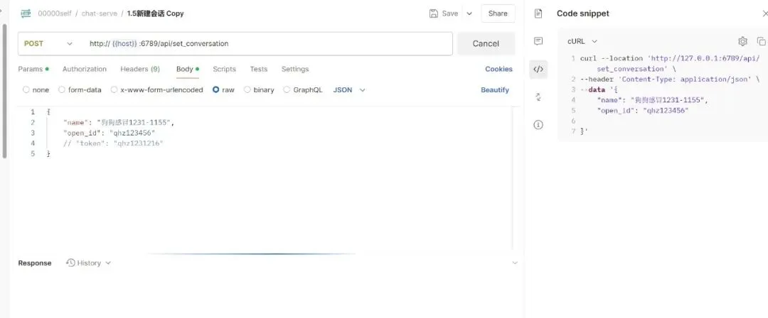 注:现在通过过ip调新建会话接口不成功,一直转,分析下原因。
