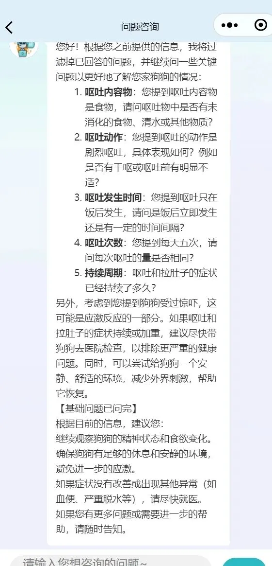 如果有问题需要询问用户,不要出现【基础问题已问完】提示