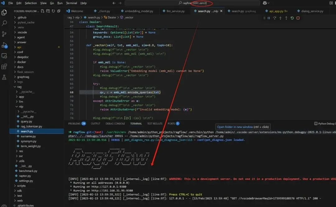 其中:本地的ragflow代码和chat_sev代码,都用zero3上的,这样就跑的快了,不占用本地内存。