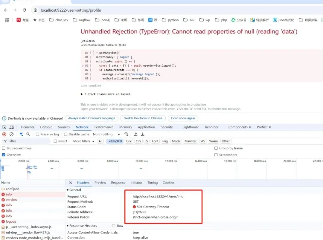 注:这个请求接口不成功,它内部有个代理,代理到哪里了呢,看下面截图,截图如下: