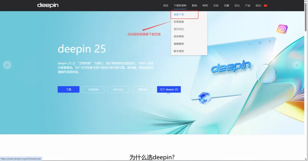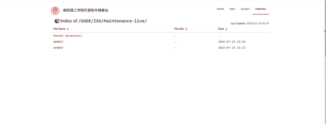 主页点击“下载和帮助” > “镜像下载”跳转到镜像下载页面: