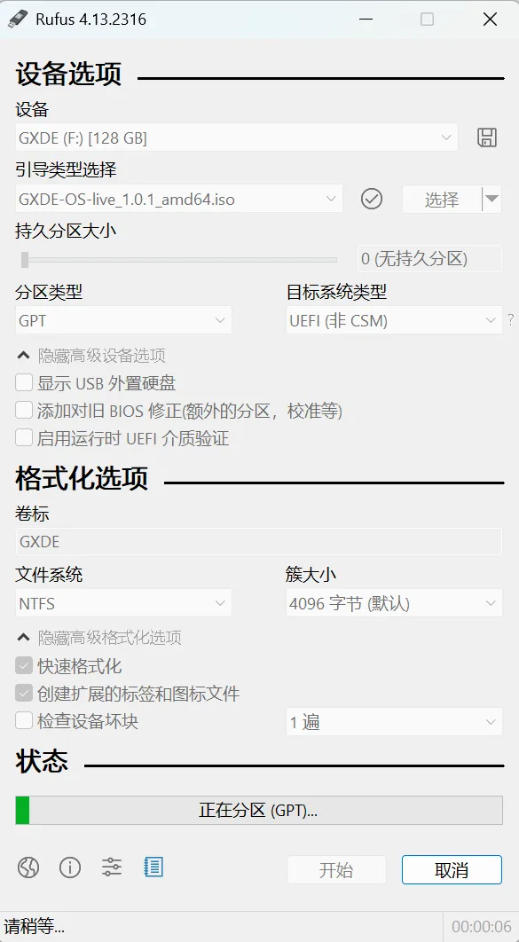 这里保持默认即可。继续点击“下一步”开始按设定的配置初始化系统: