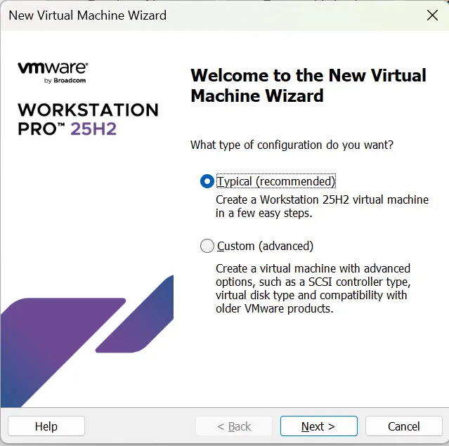 这里共有 Typical(常规)和 Custom(自定义)两种配置方式,这里选择默认的常规配置方式即可。接着点击“Next”开始配置系统镜像: