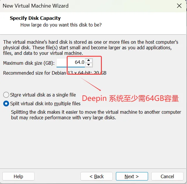 但对于 Deepin 系统而言,至少应需要64GB的容量: