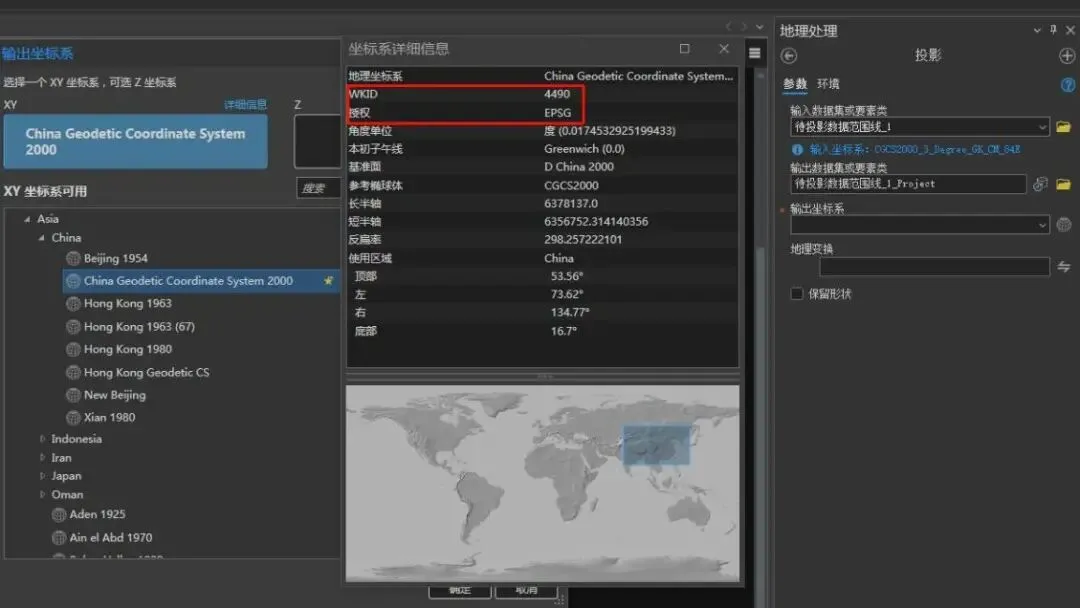 Arcgis Pro中常用坐标系EPSG码