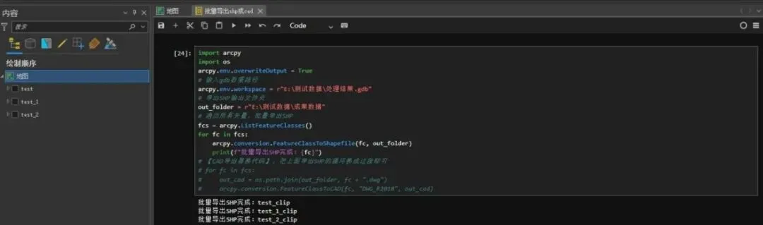 importarcpyimportosarcpy.env.overwriteOutput=True#输入gdb数据路径arcpy.env.workspace=r"D:\GIS项目\成果数据.gdb"#导出SHP输出文件夹out_folder=r"D:\GIS项目\CAD格式成果"#遍历所有矢量,批量导出CAD#【CAD导出替换代码】,把上面导出SHP的循环换成这段即可for fc in fcs:out_cad=os.path.join(out_folder,fc+".dwg")arcpy.conversion.ExportCAD(fc,"DWG_R2018",out_cad)print(f"批量导出CAD完成:{fc}")