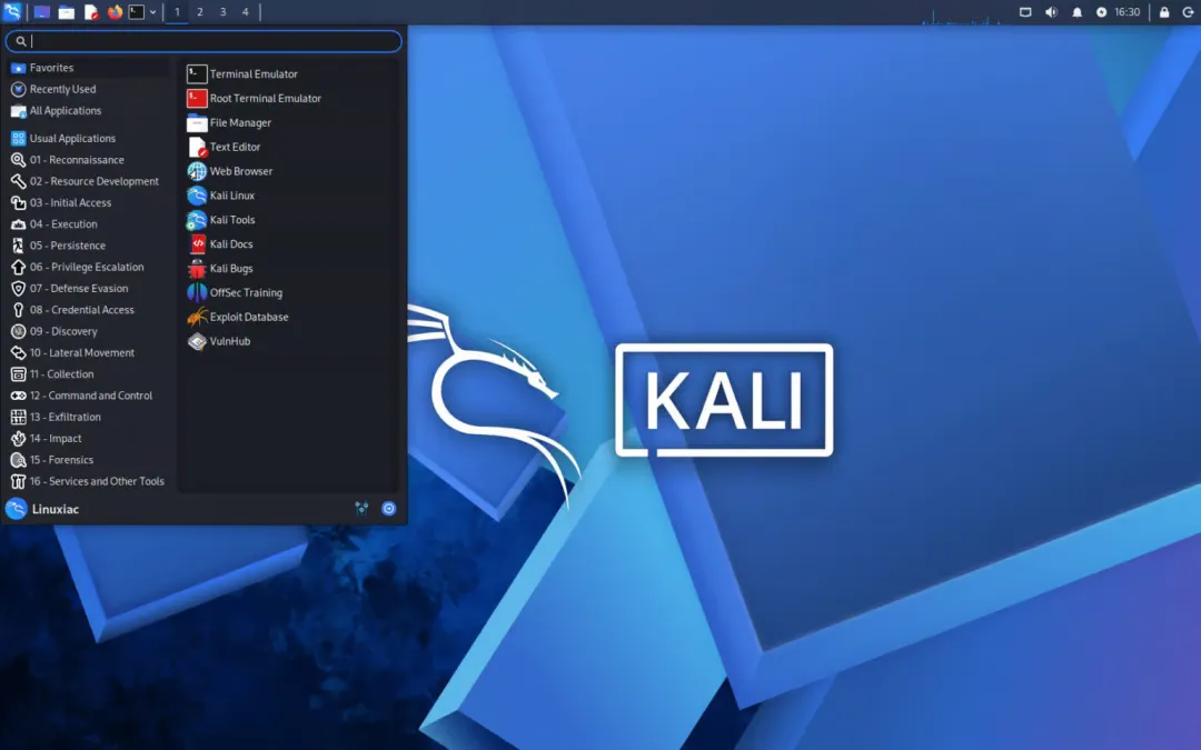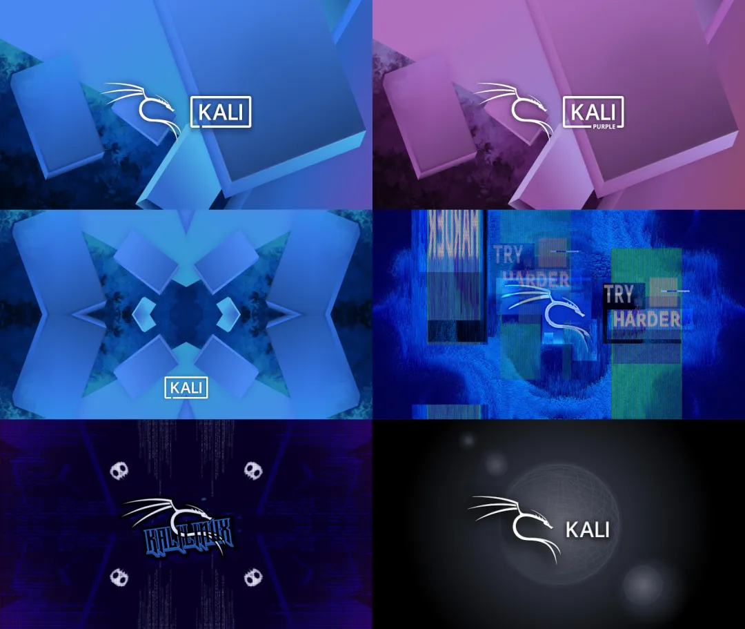 新主题采用现代蓝紫渐变色调,搭配简洁的Kali龙标,整体界面更具科技感和沉浸式体验。壁纸系列新增多款高清抽象设计,既保留了Kali一贯的黑暗系美学,又注入了2026年的前瞻活力。对于长期使用Kali的用户来说,这种系统级刷新不仅提升了视觉舒适度,更在日常高强度渗透工作中减轻了审美疲劳。