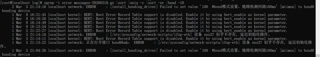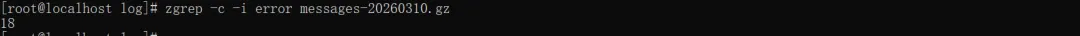 #统计ERROR日志的出现次数zgrep -c -i error messages-20260310.gz