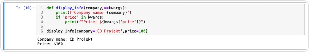 作为响应,按如下方式调用display_info():display_info(company='CD Projekt', price=100)
