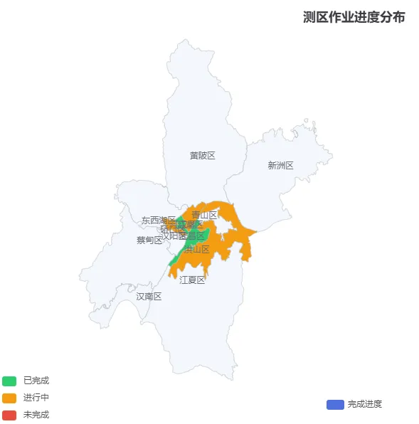 适用场景: 项目进度汇报、分区作业管理、测区分布展示