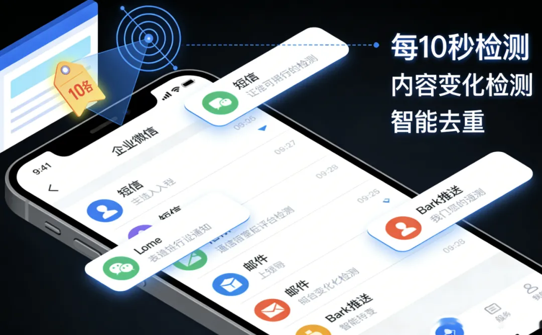 分层轮询策略:对时效要求高的场景,采用“短轮询+长轮询结合”的方式。比如每10秒快速检查一次页面关键元素,检测到变化后立即触发通知,同时降低后续轮询频率避免被封。