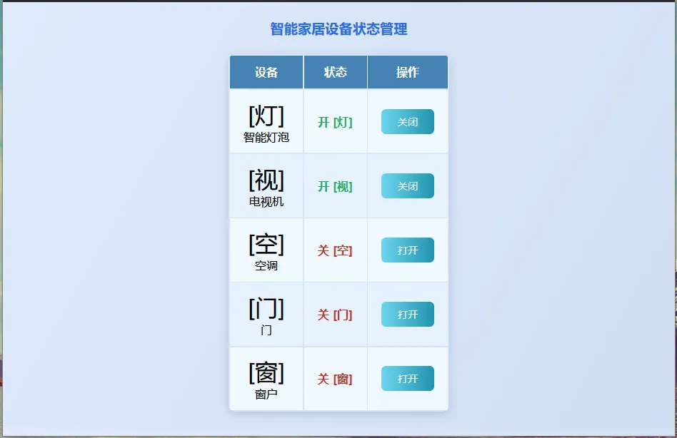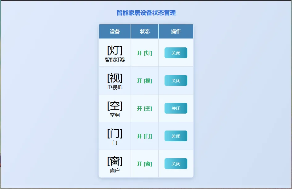 (6)点击各种智能设备对应的【关闭】按钮关闭设备,如下图