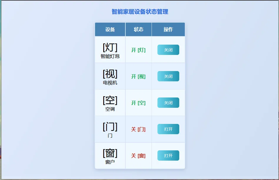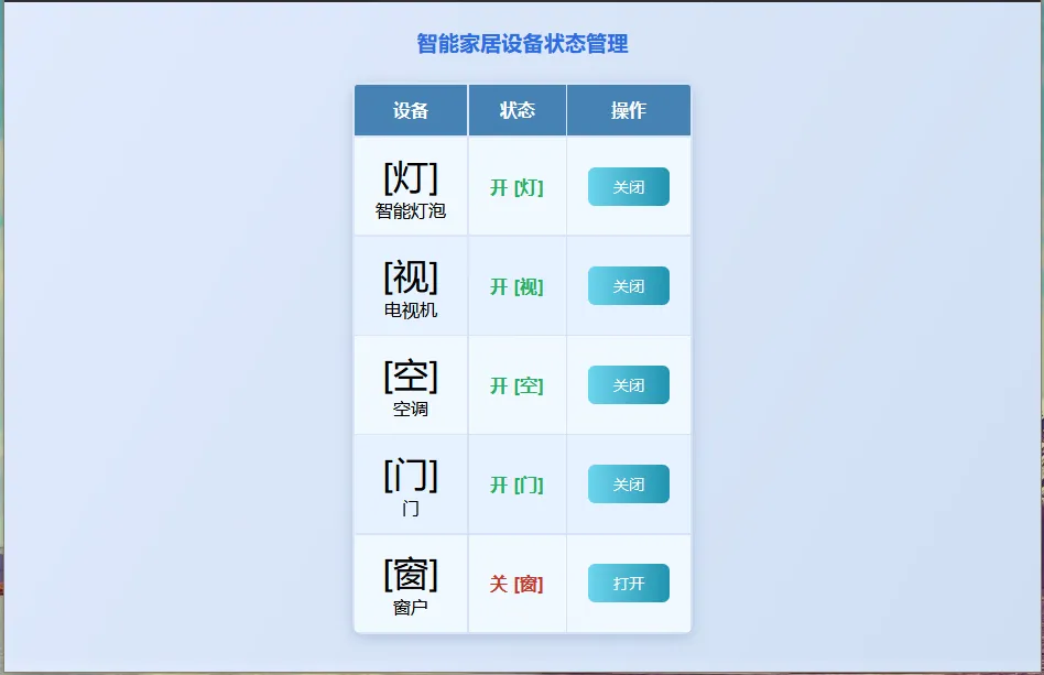 说明:这是一个虚拟智能家居Web控制系统,系统将演示如何使用Python及其相关的库和技术来实现对多种智能设备(如智能灯泡、电视、空调、门窗传感器等)的集中管理和远程控制。