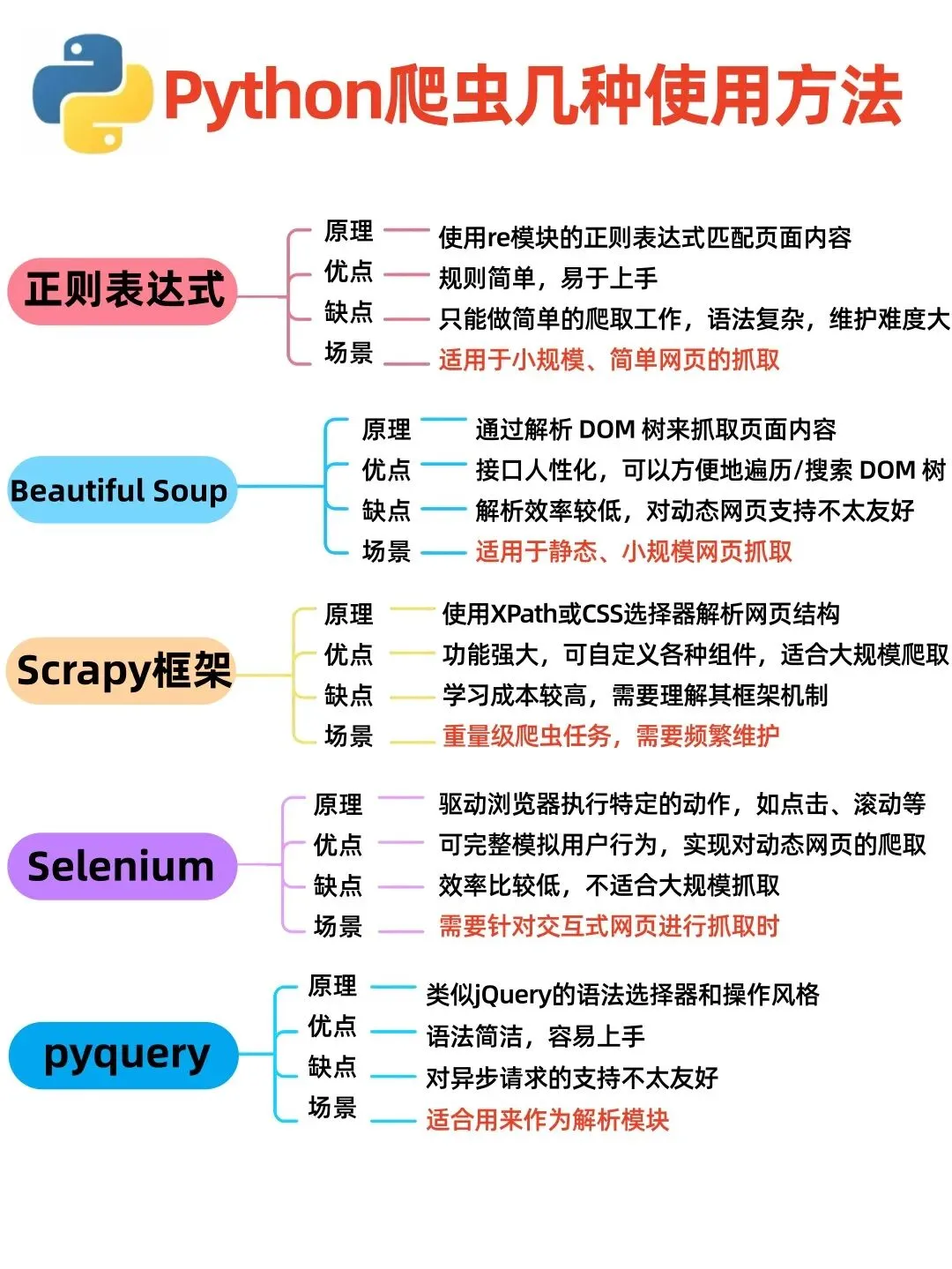 >一图总结5 种 Python 爬虫用法!