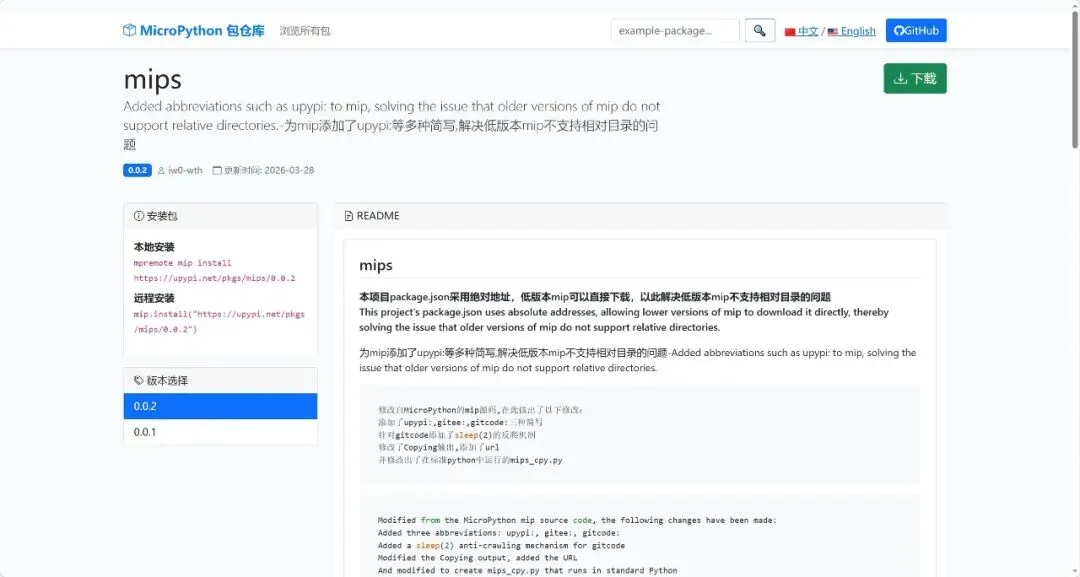 详细说明可看:https://upypi.net/zh/pkgs/mips