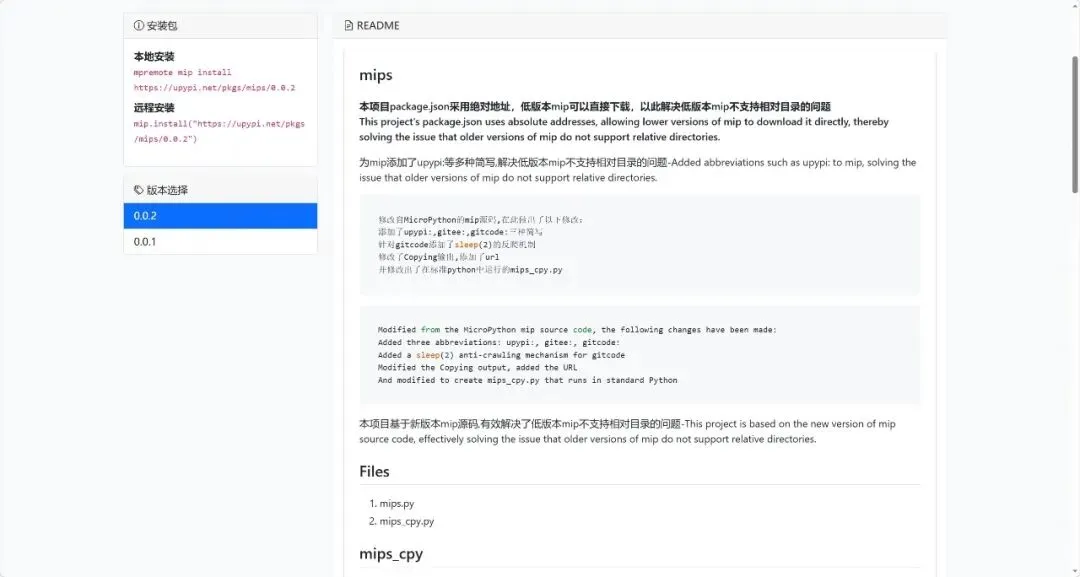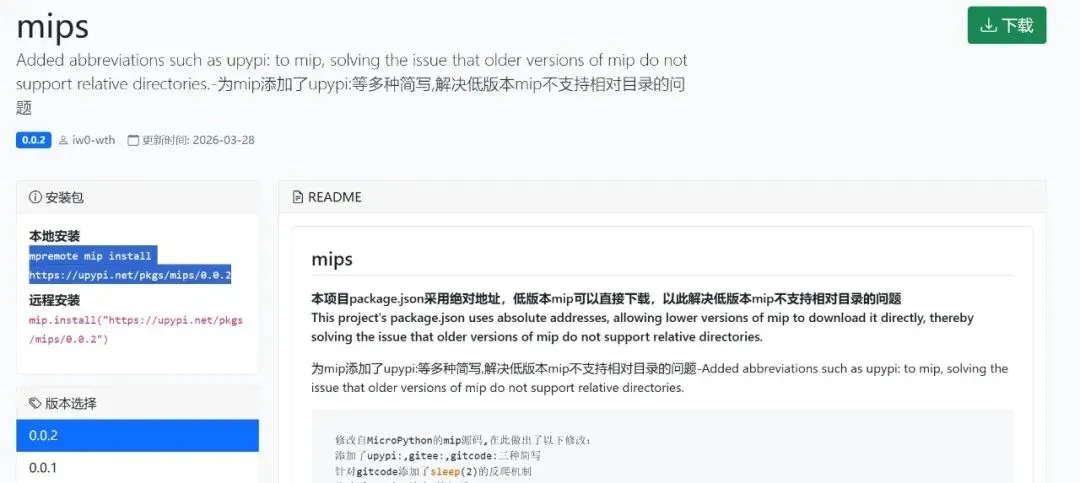 mips 是基于 MicroPython 官方 mip 源码修改的增强版工具,核心解决两个痛点: