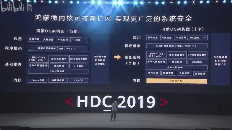 而鸿蒙系统采用了“微内核”的设计理念,区别于安卓等系统的“宏内核”,微内核采用同一套操作平台,针对不同硬件能力的产品进行部署,并采用分布式架构,提升效率。