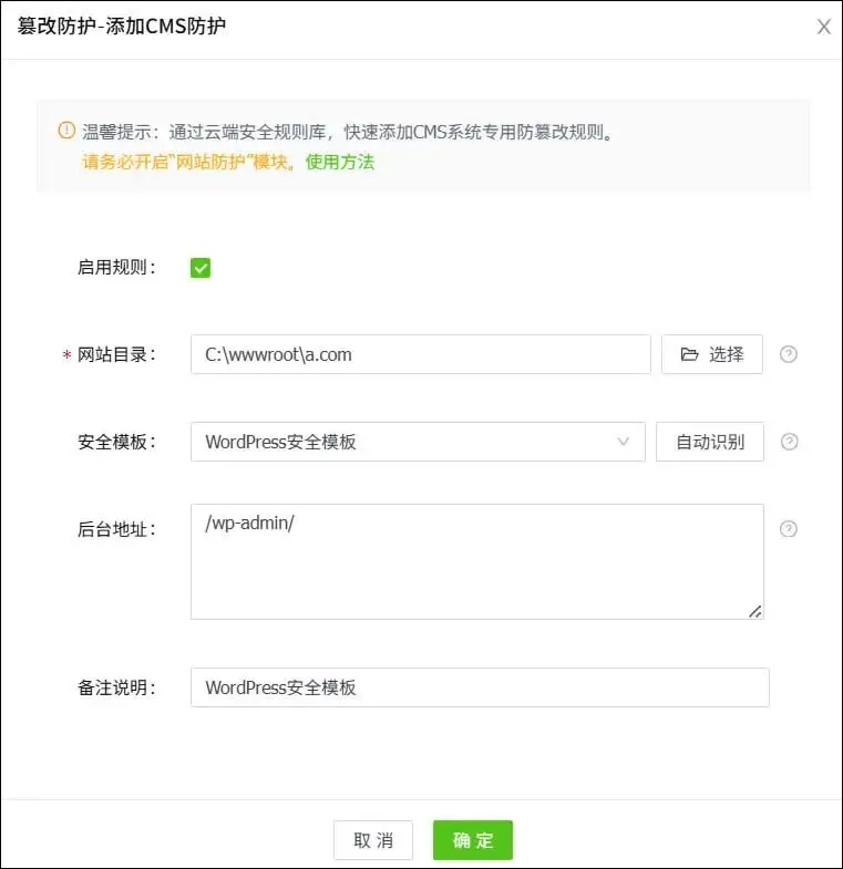 一键添加CMS防篡改规则