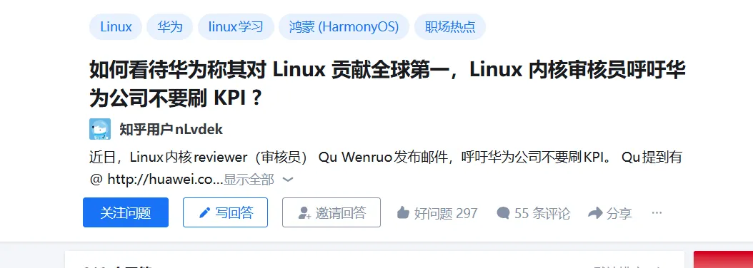 最近Linux社区引发热议,华为宣称对Linux的贡献全球第一,却遭Linux内核审核员Greg Kroah-Hartman公开喊话:别为刷KPI提交低质量代码。