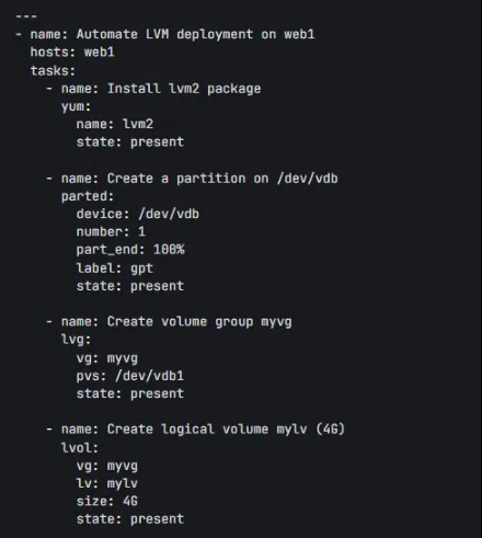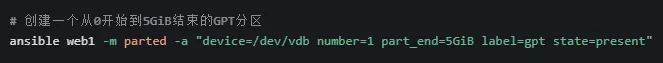 磁盘分区:使用 parted 模块创建物理卷(PV)所需的分区。