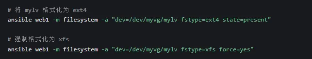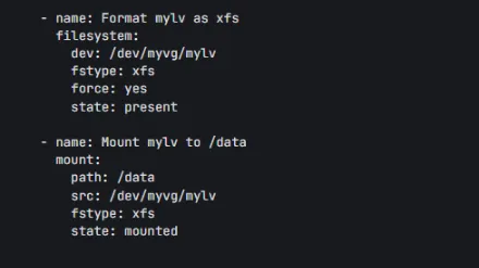 创建文件系统:使用 filesystem 模块对 LV 进行格式化。