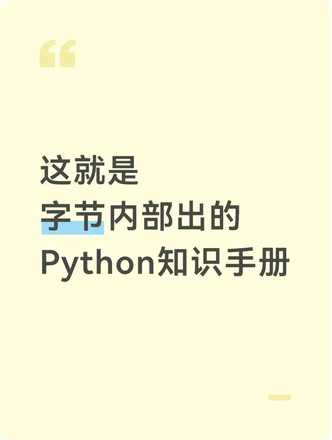 而此时字节出品的《Python 知识手册》(V4.1 版),以 389 页的超全容量、体系化的内容架构、大厂级的实战干货、严谨规范的知识讲解为Python 学习者带来了福音。