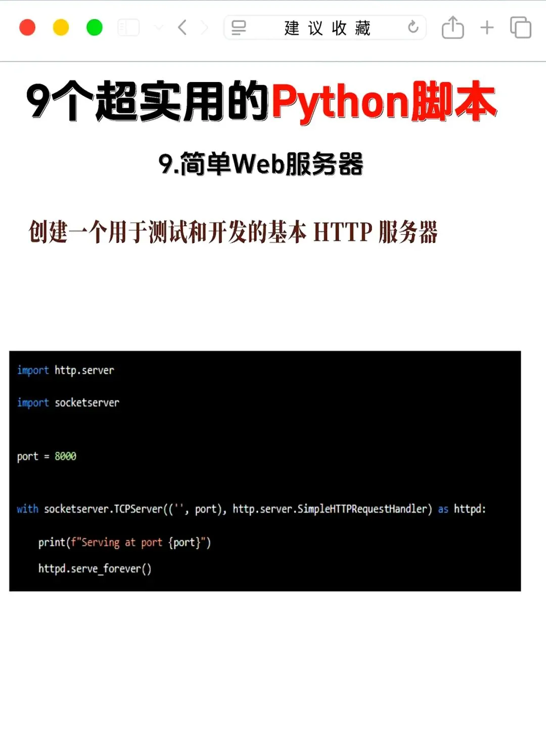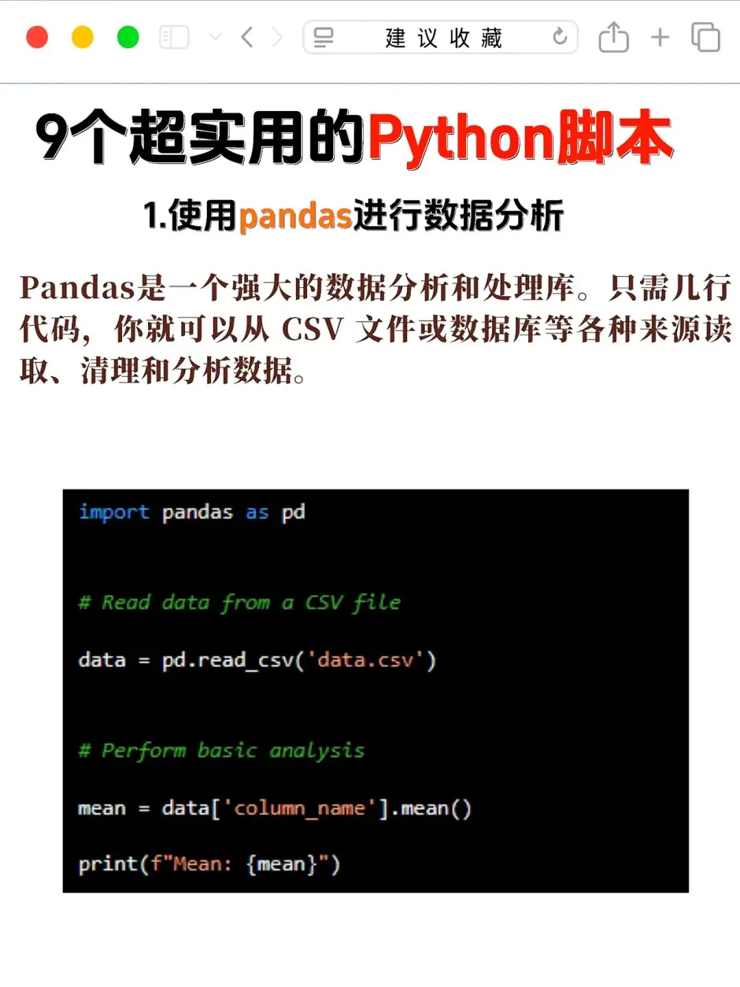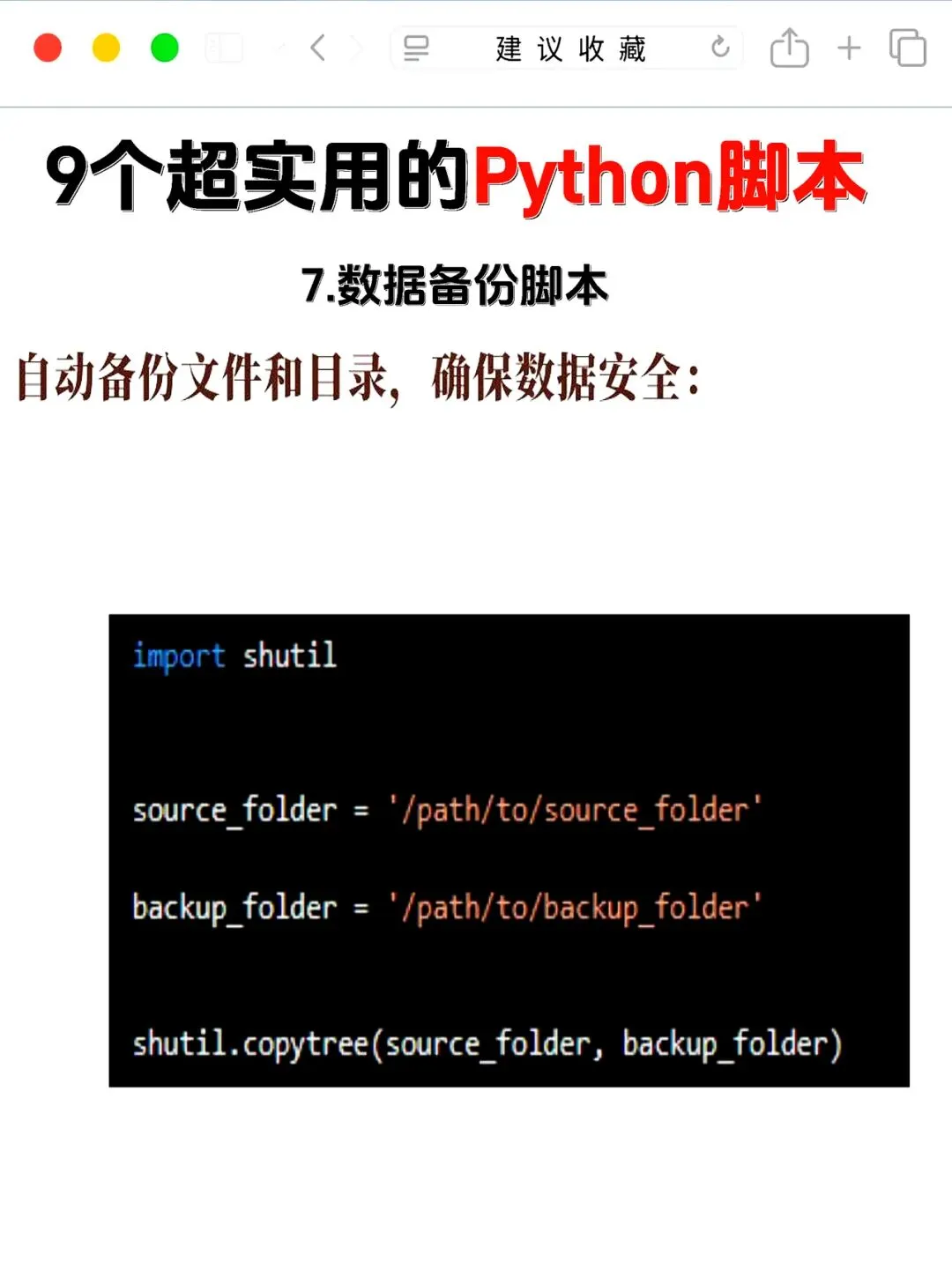 今天分享九个超实用的 Python 脚本,覆盖 Excel 自动化、文件管理、图片处理、数据抓取、定时提醒等高频场景。代码简洁易懂,改个路径就能运行,新手也能轻松上手,让代码帮你打工,告别无效加班!